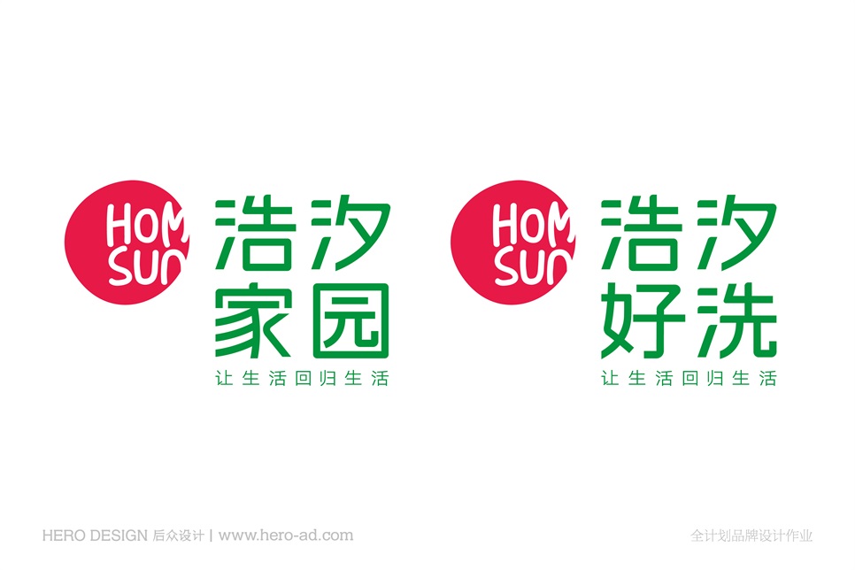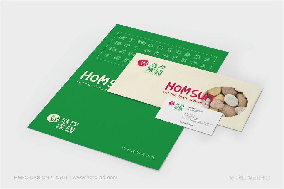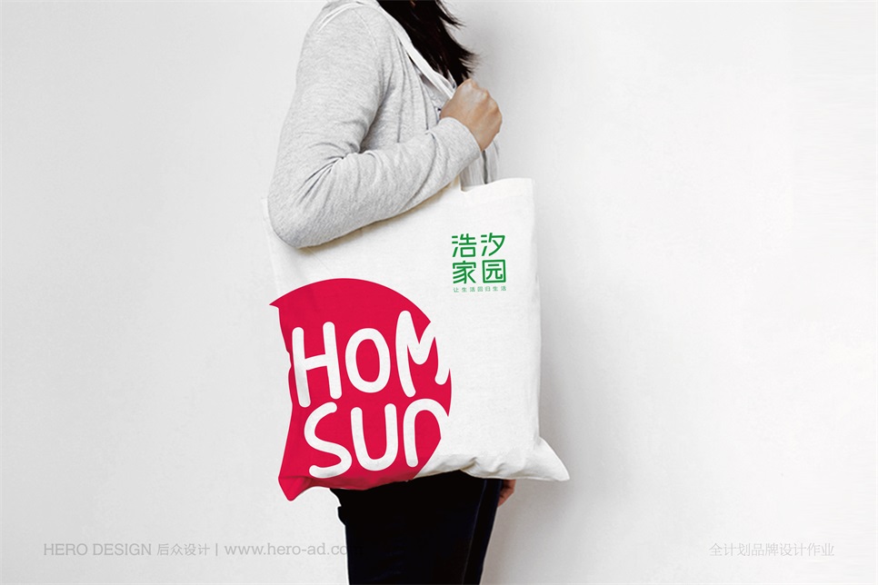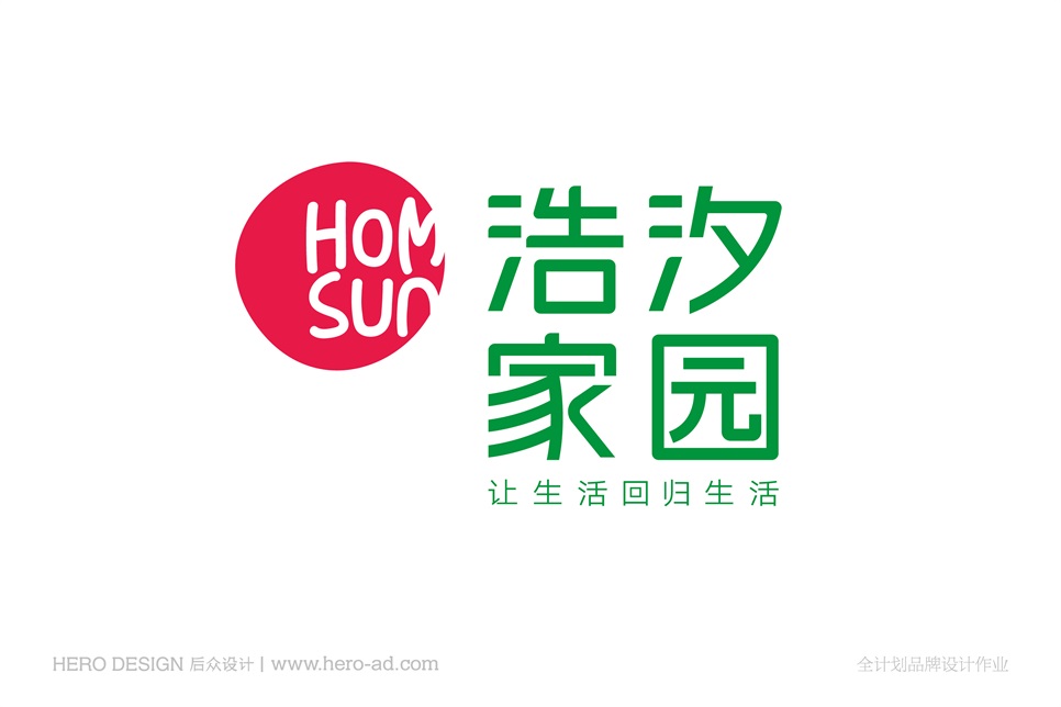 在策略的引導(dǎo)下,用設(shè)計(jì)來體現(xiàn)品牌內(nèi)涵,是接下來的工作。浩汐標(biāo)識以浩汐家園中文為主,配合隨形圖形,植入品牌的英文名稱“homsun”,配合品牌Slogan共同組合。