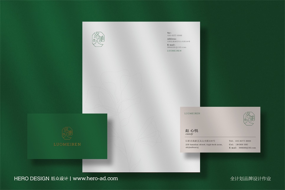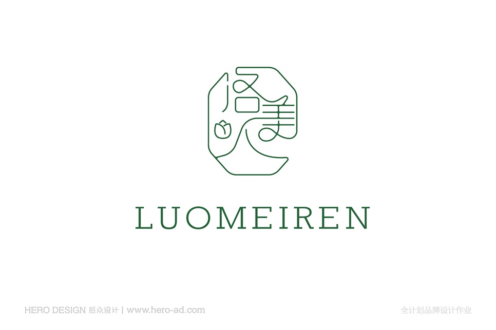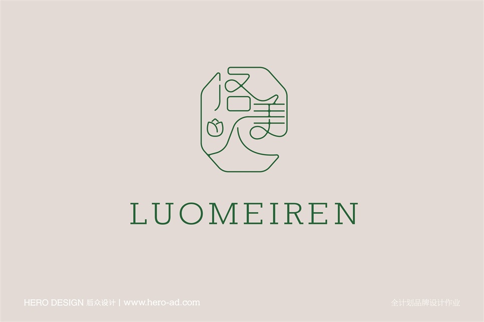 洛美人標(biāo)志以字體標(biāo)志進行呈現(xiàn),以窗花、花朵、藤蔓為設(shè)計靈感,進行洛美人字體的融入設(shè)計,通過字體的變形設(shè)計增加視覺層次感以及設(shè)計感,利用字體與圖形完美結(jié)合設(shè)計達到加深品牌記憶點的目的,給足想象空間,具有強大的品牌包容性。